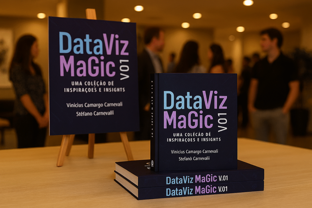Nesta vibrante coleção, você descobrirá dicas, ferramentas, recursos, visuais e lampejos de inspiração criativa. Este livro captura um momento único no tempo, quando a imaginação humana começa a dialogar com a inteligência artificial. Seja você é um analista, designer, uma mente curiosa ou um contador de histórias, este livro o convida a explorar, se inspirar e vivenciar a magia dos dados.. Confira as sessões: